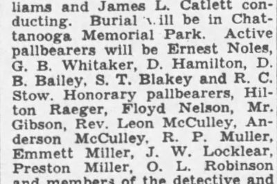 - Burial/Memorial Location: Chattanooga Memorial Park, Chattanooga, Hamilton County, Tennessee