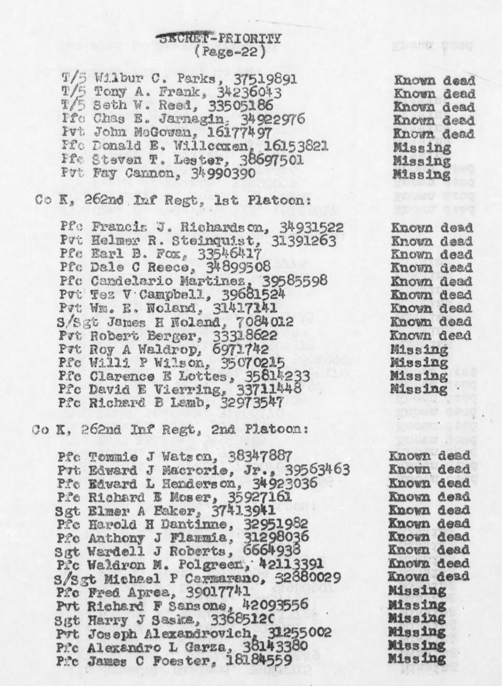 - Division/Assignment: 262nd Infantry Regiment, 66th Infantry Division