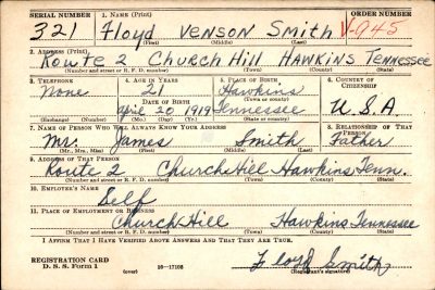Floyd Venson Smith was the son of James Nugin Smith and Mollie Caldonia Sellers.
