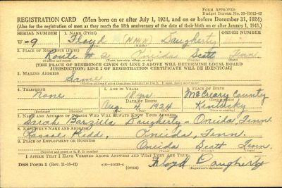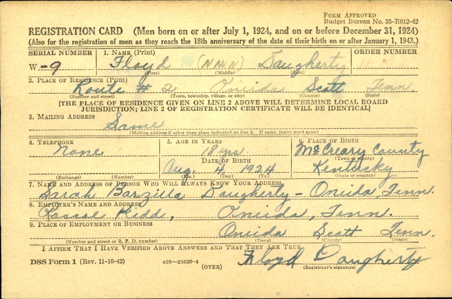 Floyd Daugherty was born in Kentucky, the son of Hiram Clay Daugherty and Sarah Barzilla Crabtree.