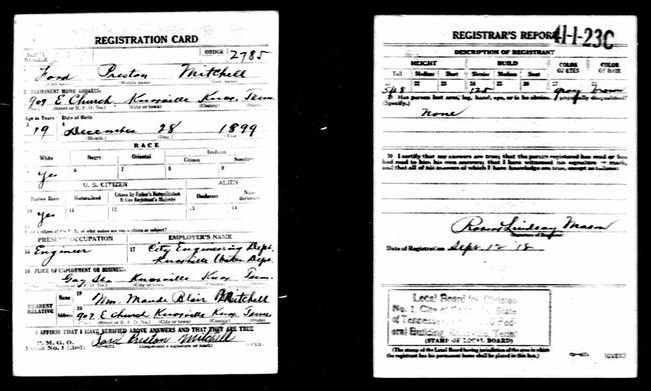 Ford Preston Mitchell was born on 28 December 1899, Tennessee. Son of Maude Blair Mitchell. Husband of Mary Ruth Wells.