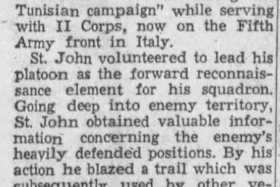 “Little did Lieutenant St. John realize that the following day he would lose his life in the assault on the 1,500-foot-high Djebel Ichkeul. Every time I read the Poem “The Zero Hour,” my thoughts drift back to that evening on the plains of North Africa. I can still hear our gallant lieutenant singing the ending of the song. The night wind carried the last words he ever sang, out past the campfire’s glow, to trail away into the darkness. On the morrow, the warm breeze ascending the hill whispered the words of the last verse back to him as he moved forward into battle”—