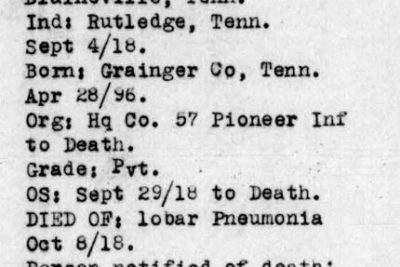 He died of lobar pneumonia in France in 1918. He was 22. He was initially buried at Cemetery 531, Lambazellac, France.
