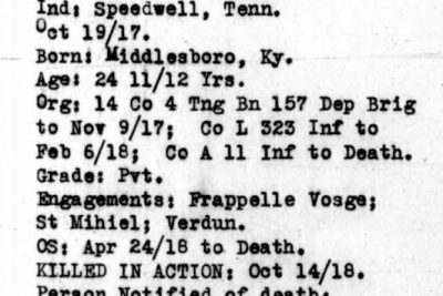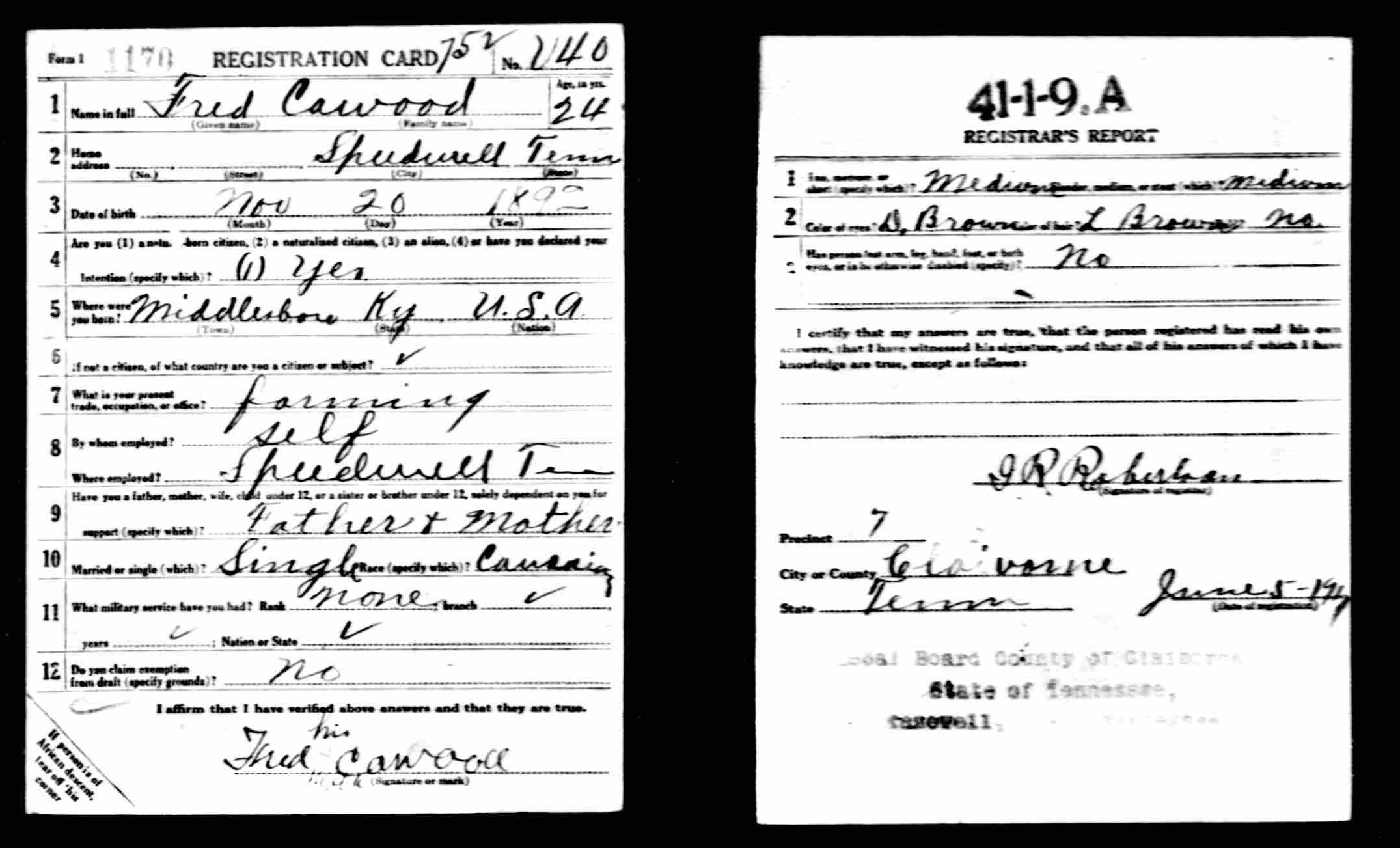 Fred Cawood was orn 20 November 1892, Middlesboro, KY