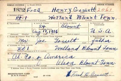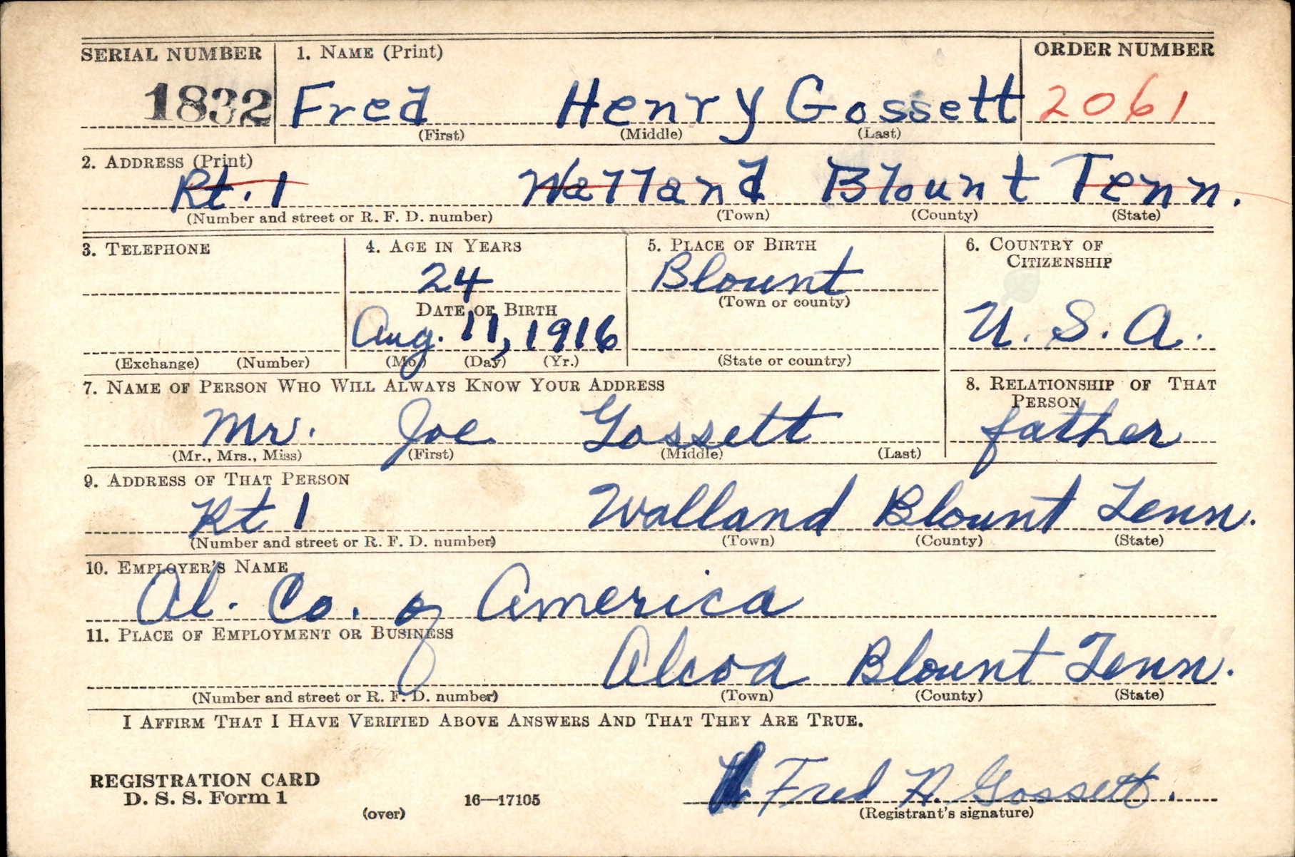 Fred Henry Gossett was born on 11 August 1916 to Joe Gossett and Myrtle Henry.