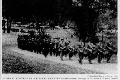 The telegram from the adjutant-general to Walley said: “The Secreatary of War desires me to express deep regret that your brother, Lt. Frred J. Walley, was killed July 8 in Kunming, China. Letter follows.