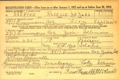 Frederick “Fred” Roselle McNabb was born on 2 November 1923 in Weiser, Idaho. He was the son of William Oliver McNabb and Mamie Morgan Simpson.