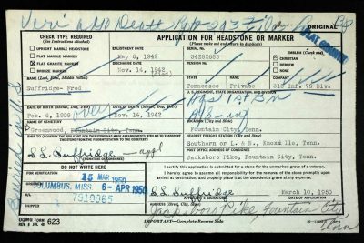 - Burial/Memorial Location: Greenwood Cemetery, Fountain City, Knox County, TN