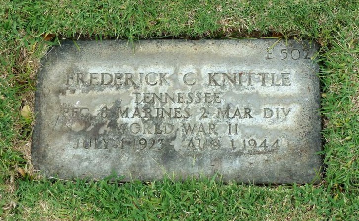 PFC Knittle was initially buried at Tinian Cemetery, Marianas Islands. He is buried at the Honolulu Memorial, HI, E, 502.