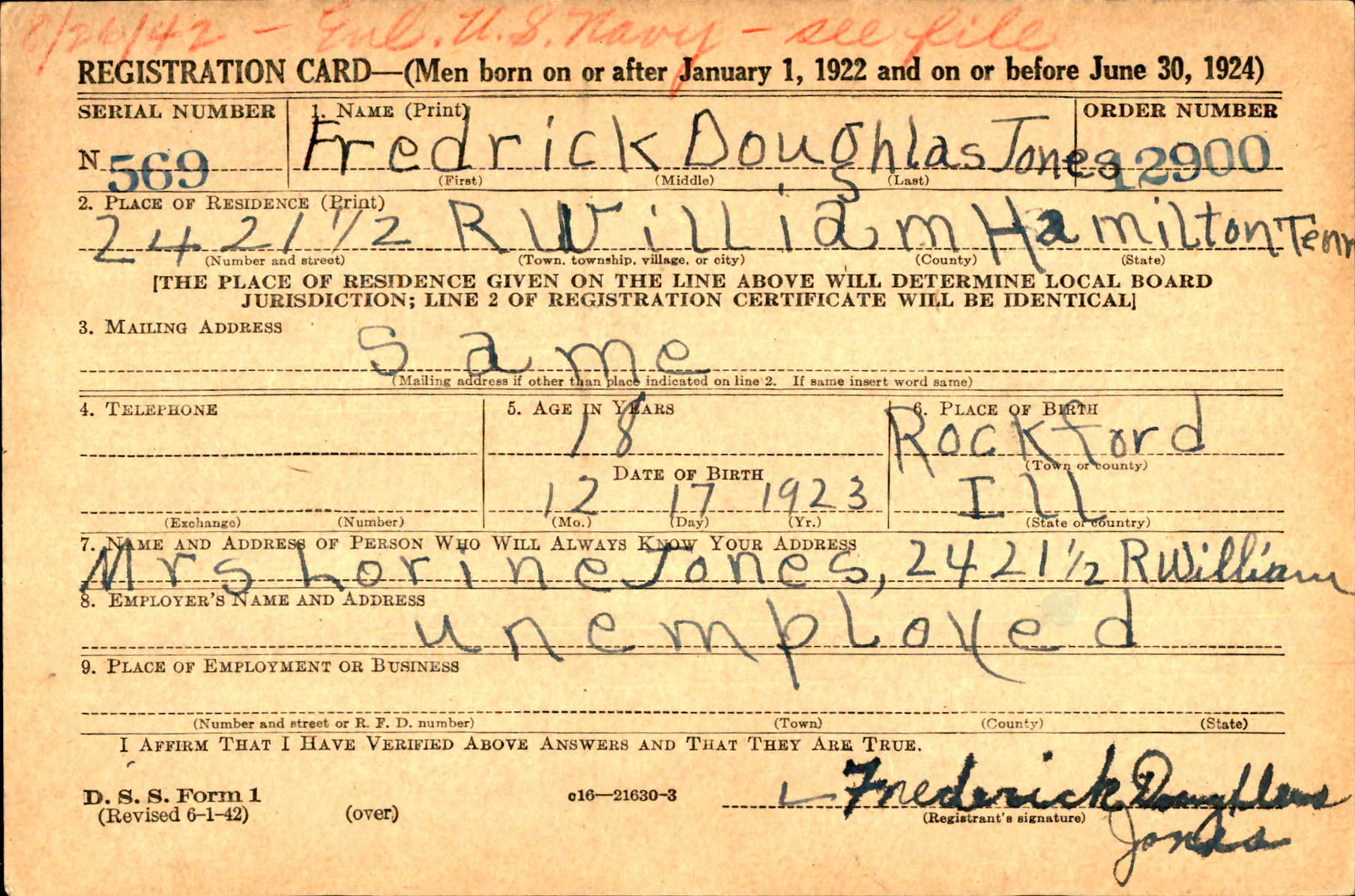 Frederick Douglas Jones was born in Rockford, Illinois to William Jones and Lorraine Eason.