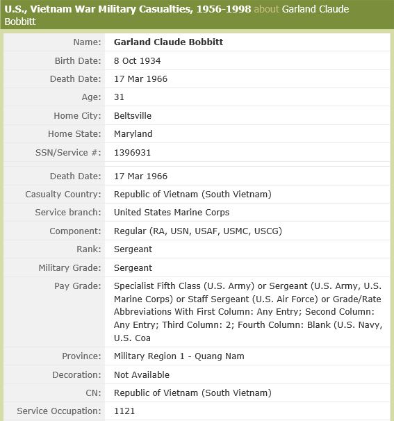 In the dark morning hours of St. Patrick’s Day 1966, Garland C. Bobbitt was one of three brave young Marines who gave their lives defending an outpost on Hill 55 in Quang Nam Province.
