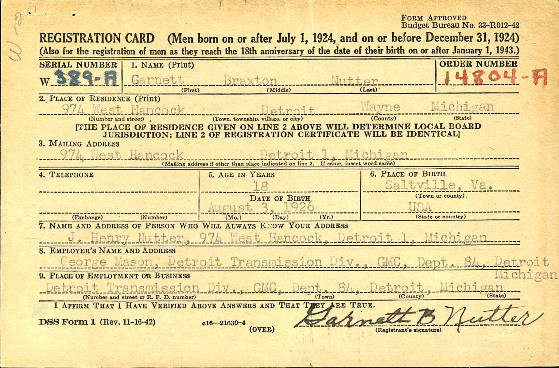 Garnett Braxton Nutter was born at Washington, Virginia, the son of John Henry Nutter and Margaret Clark Caywood.
