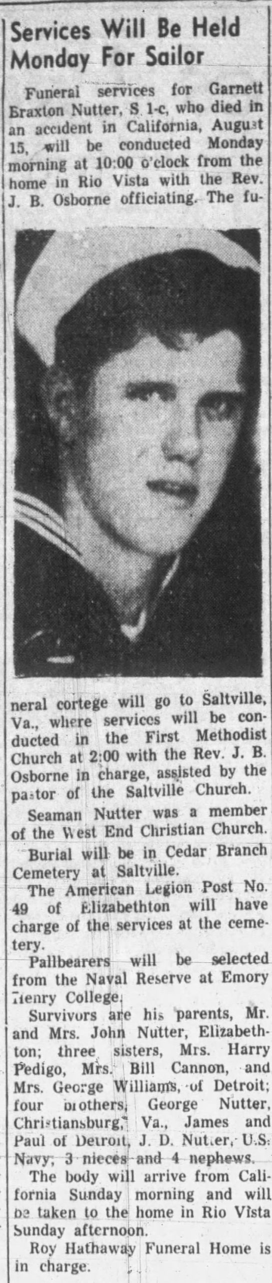 Braxton Garnett Nutter, seaman first class, Elizabethtown, Tenn.