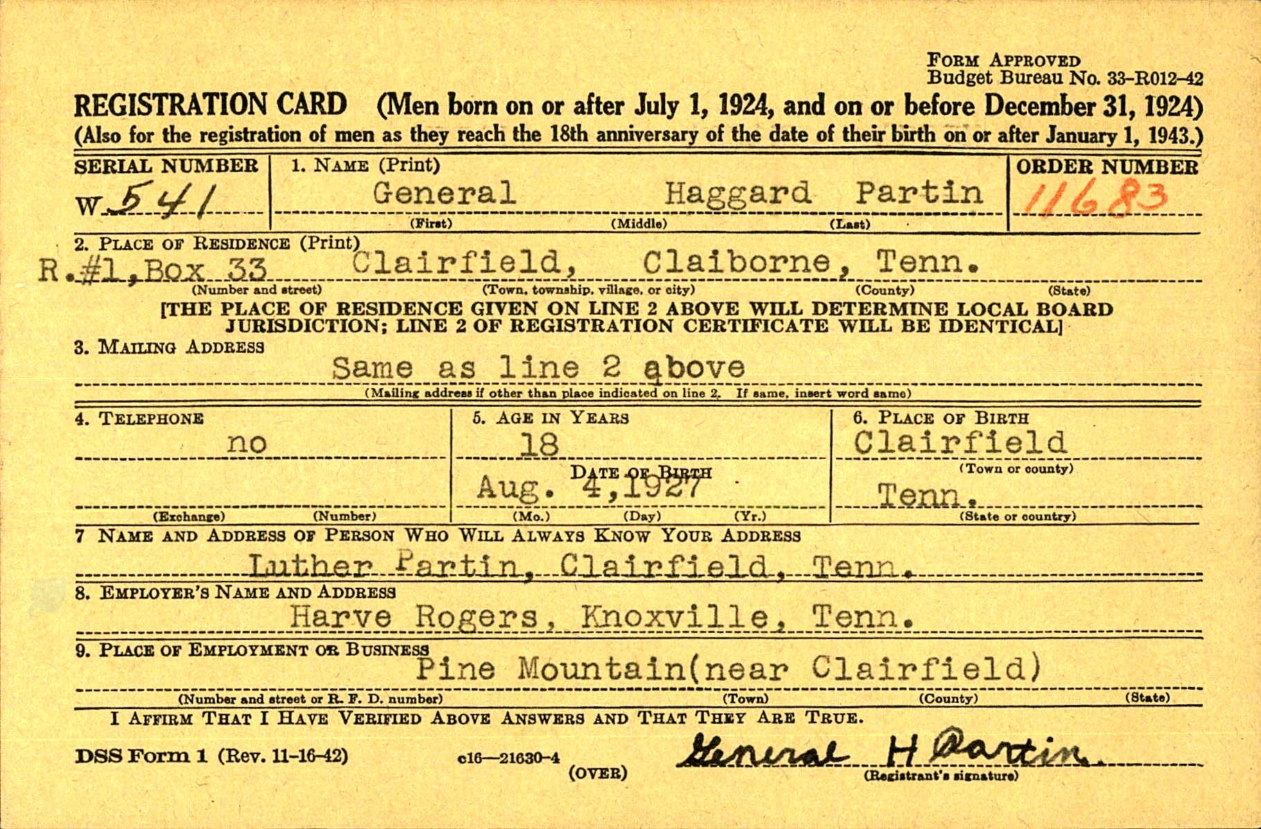 General Haggard Partin was the son of Luther Partin and Elizabeth Lowe.