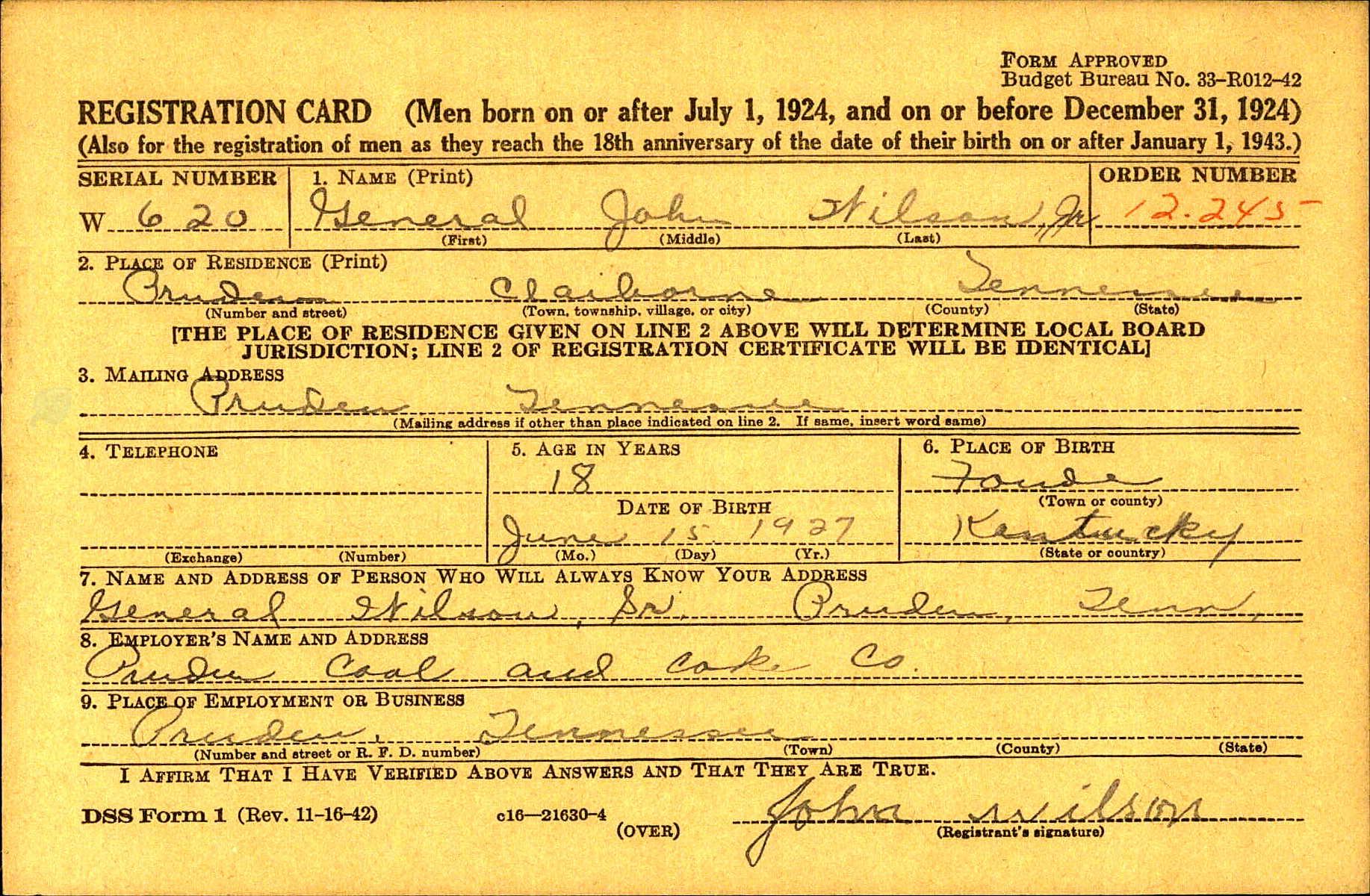 General John Wilson was born in Fonde, Kentucky, the son of General John Wilson Sr. and Lenice Pearl Thomas.