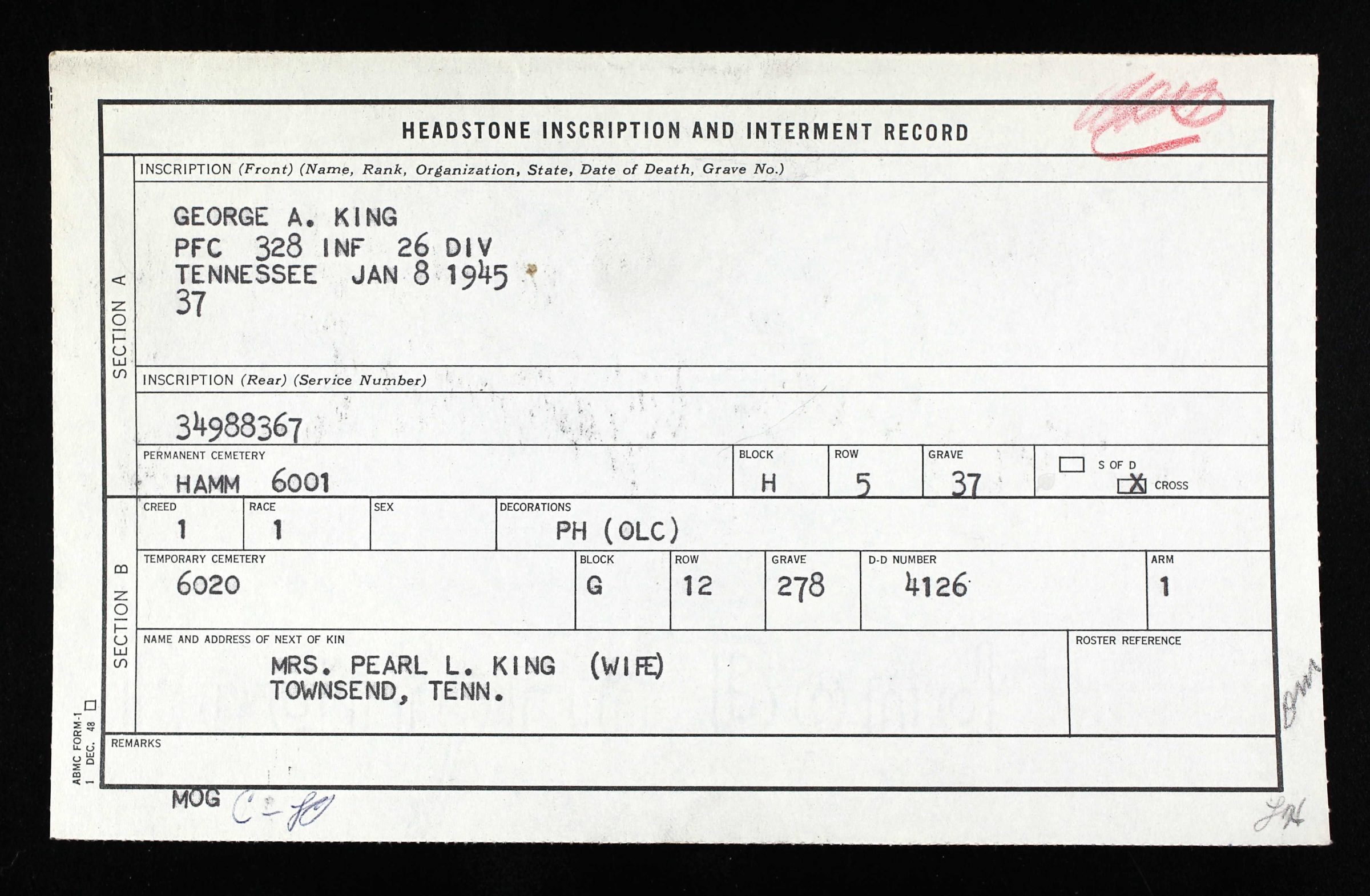 - Division/Assignment: 328th Infantry Regiment, 26th Infantry Division