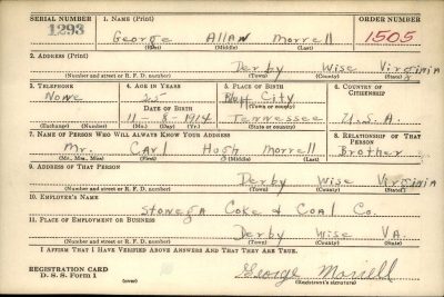 A member of the Bluff City Baptist Church since early childhood, Pvt. Morrell is the son of the late Mr. and Mrs. Albert Morrell. Prior to entering the service he was employed by the Stonega Coal and Coke Company. He died August 12, 1943 while in the Fiji Islands in the Southwest Pacific. He entered the service on December 5, 1942. Full military honors will be accorded him at the Grave.