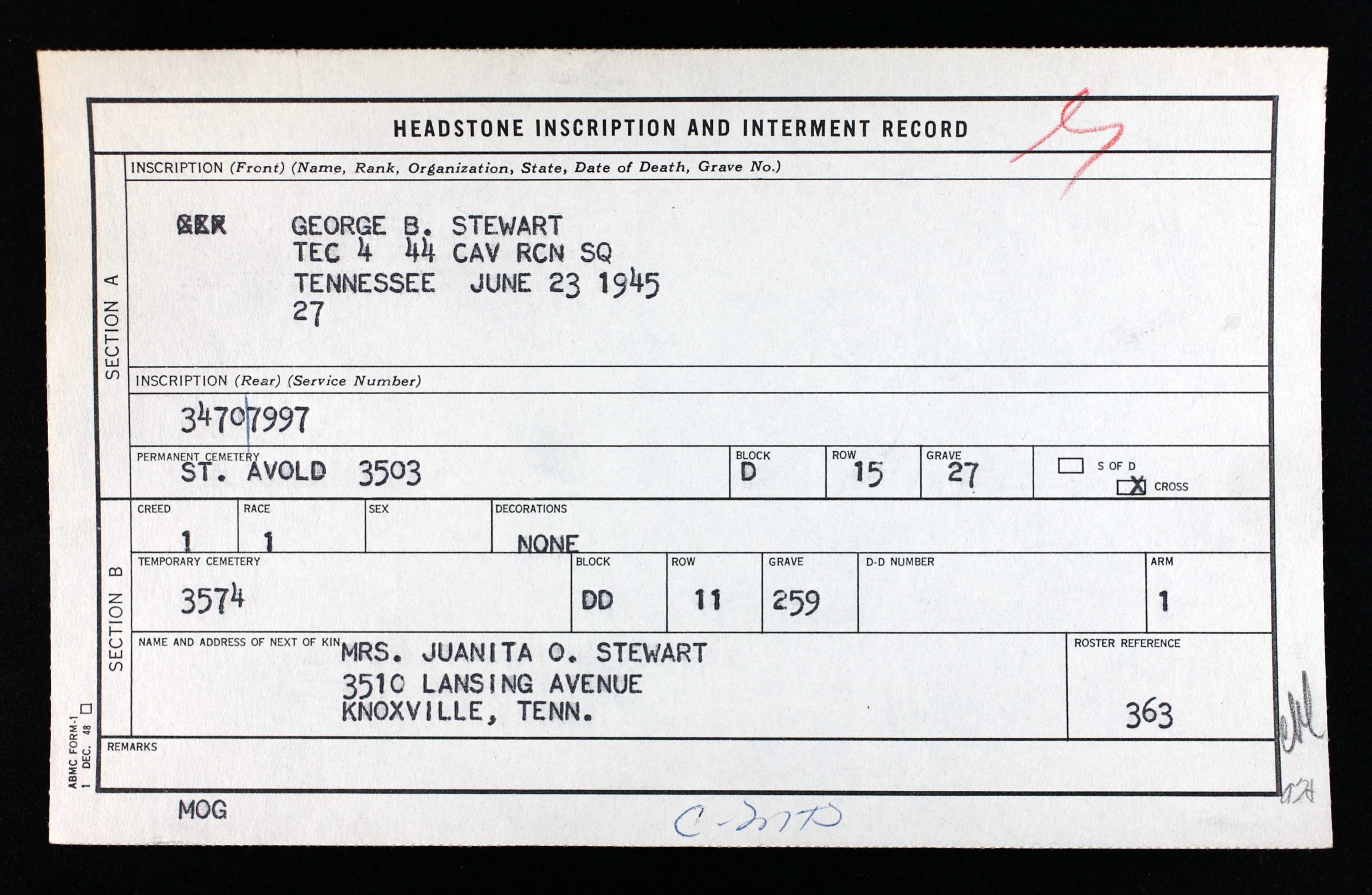 George B. Stewart was born on July 26, 1923 in Fresno, CA to Thomas C. Stewart and Hellen Williams. He married Juanita Frances O’Barr in 1942.