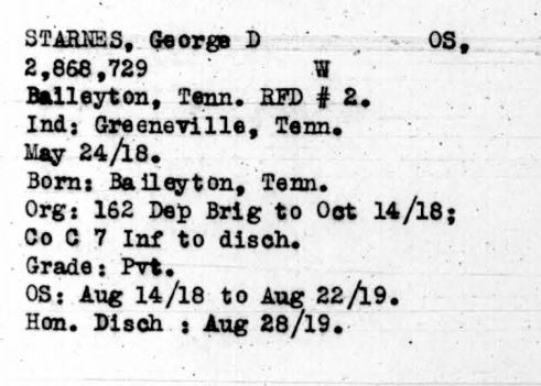 George Dewey Starnes was born on 31 March 1896 and died 29 August 1937 at Washington, Tennessee. He was the son of Jacob Leonard Starnes and Emma Craddock and husband of Jennie Justice. Father of George E. Starnes and Ellen Starnes.