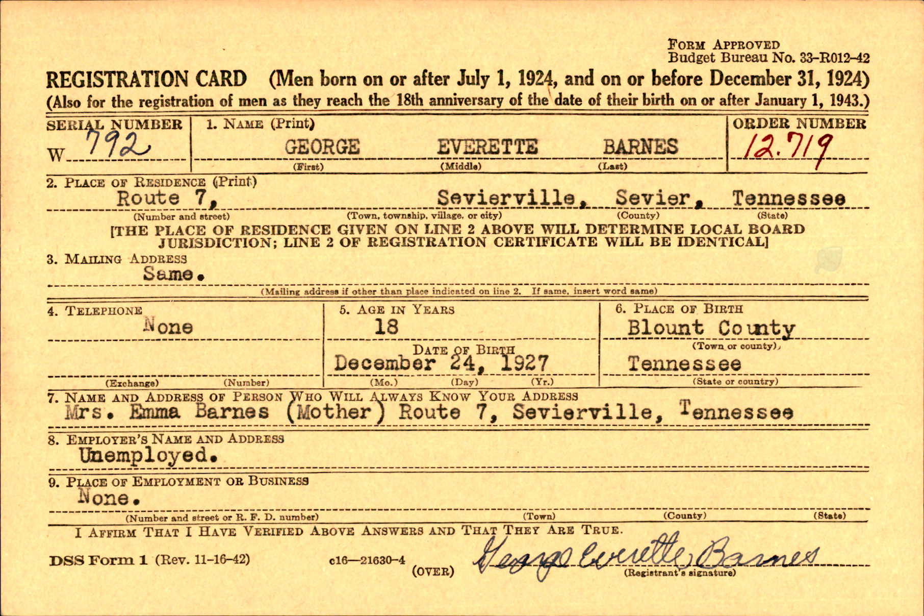 George Everett Barnes was the son of Joseph “Joe” Everette Barnes and Margaret Emma Moore. He was the brother of Clarence Oscar Barnes.