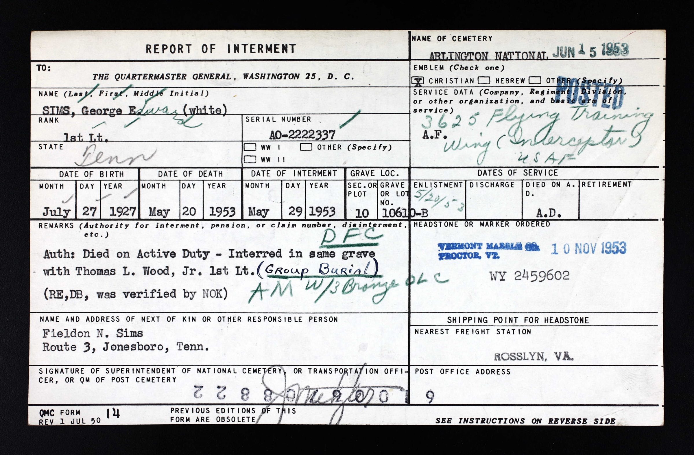 - Burial/Memorial Location: Arlington National Cemetery, Arlington, VA