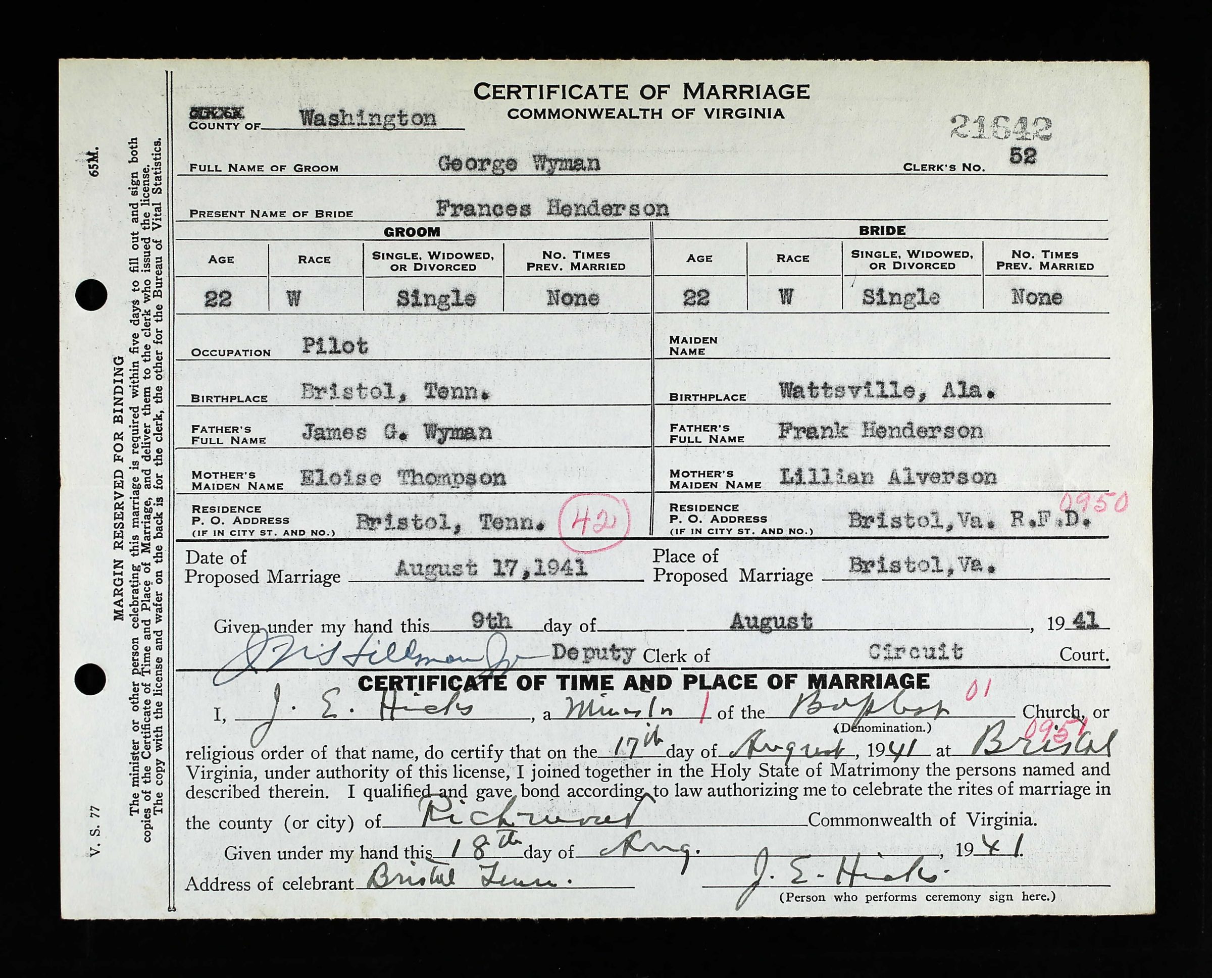 George Harvey Wyman was the son of James Garfield Wyman and Eloise Thompson. He was married to Lillian Frances Henderson