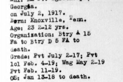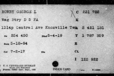 Pvt Mowry entered the service of the U.S. Army in October 1917. As a member of Battery D, 5th U.S. Field Artillery, received his military training at Fort Oglethorpe, GA. Sailed for overseas duty in January 1918, and as a member of the American Expeditionary Force took part in all engagements of his command. Killed accidentally on May 4, 1919, as a result of a pistol shot by an M.P. He was only 22.