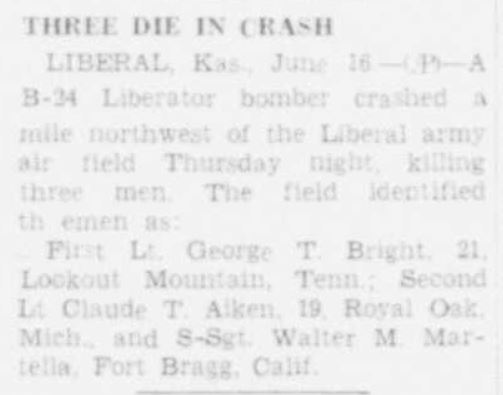 Second Lieutenant Bright served with the 2525th Base Unit, Liberal Army Airfield, Kansas.