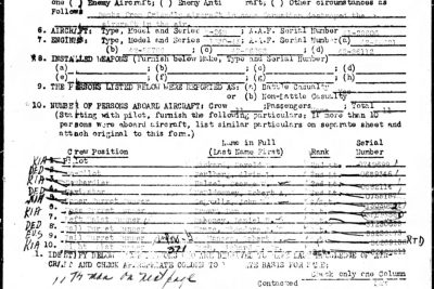 “As Bombs away on our ship was called, I looked out to see how ship 606 was doing, since he was flying off the left wing of the lead ship in our element. We were on the lead ship’s right wing. I saw his bombs start to fall, looked forward again, heard an explosion, I looked back and saw 606 fall off sharply on his right wing in a sheet of flames. Apparently a bomb from an over-riding ship in the formation hit his wing inboard of #3 engine and exploded his gas tanks. I doubt if anyone could have lived.”