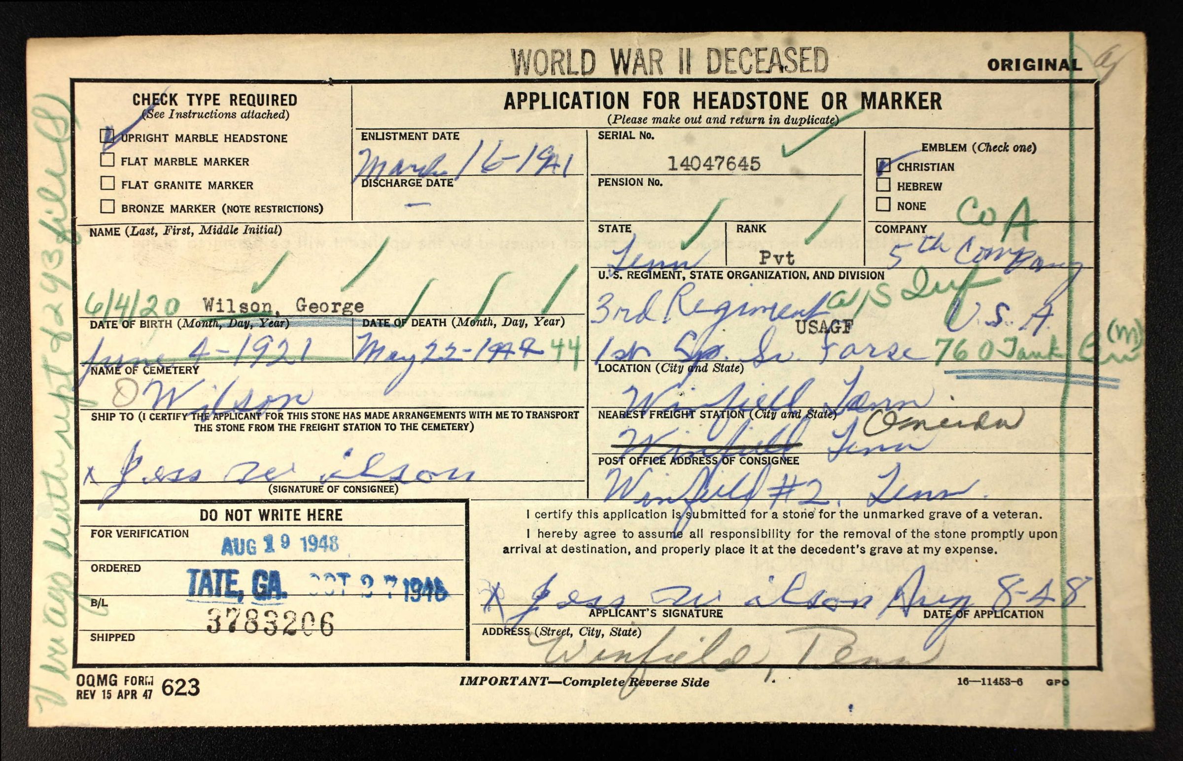 George Wilson was born 4 June 1920, the son of Jesse Albert Wilson and Savanah Strunk.