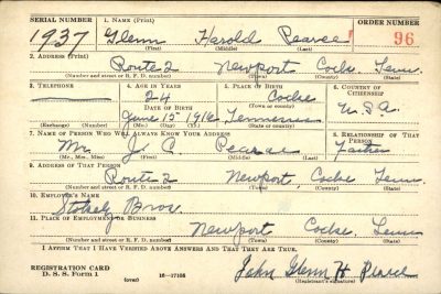 Glenn Harold Pearce was born on 15 June 1916, the son of John Creswell (JC) Pearce and Nannie Belle O’Dell.