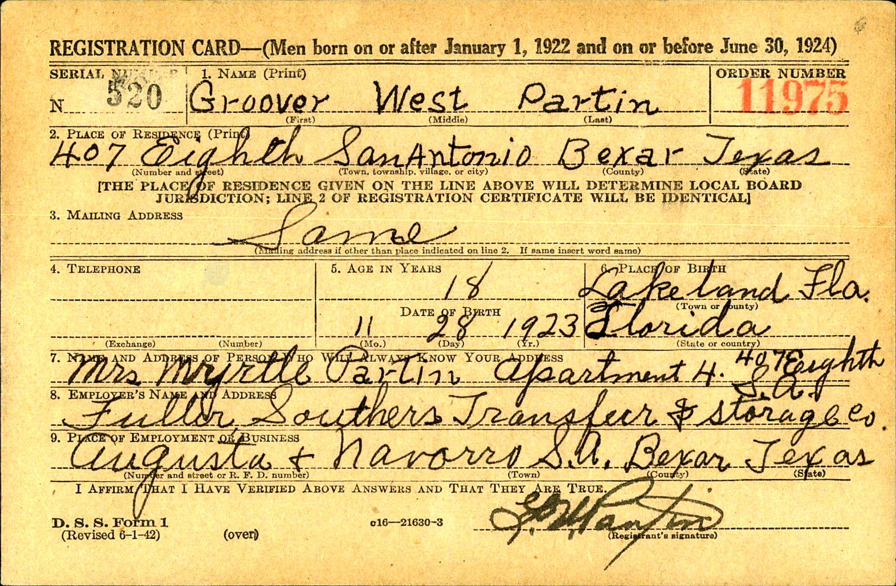 - Burial/Memorial Location: Fort Sam Houston National Cemetery, TX