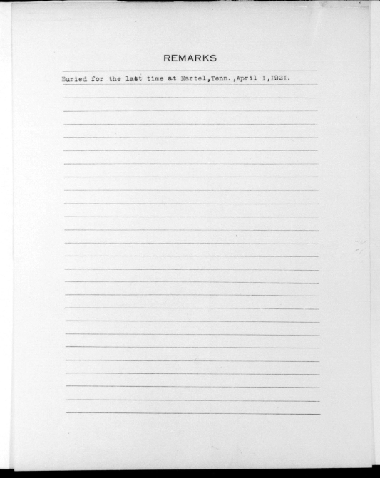 He is buried at Martel United Methodist Church Cemetery, Lenoir City, Tennessee.