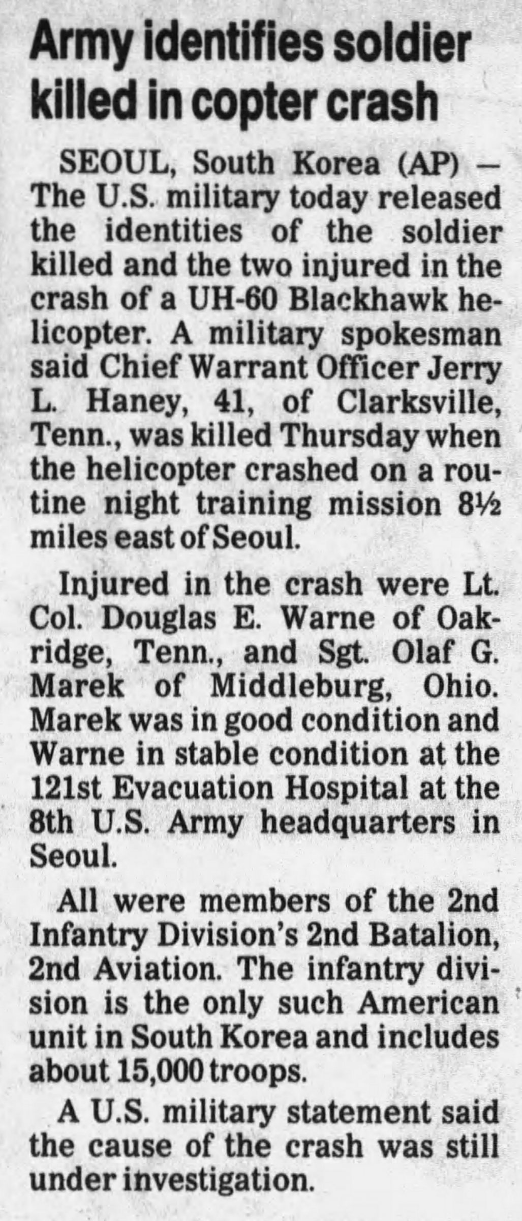 Died: July 7, 1989 in Kuri City, Korea in helicopter crash