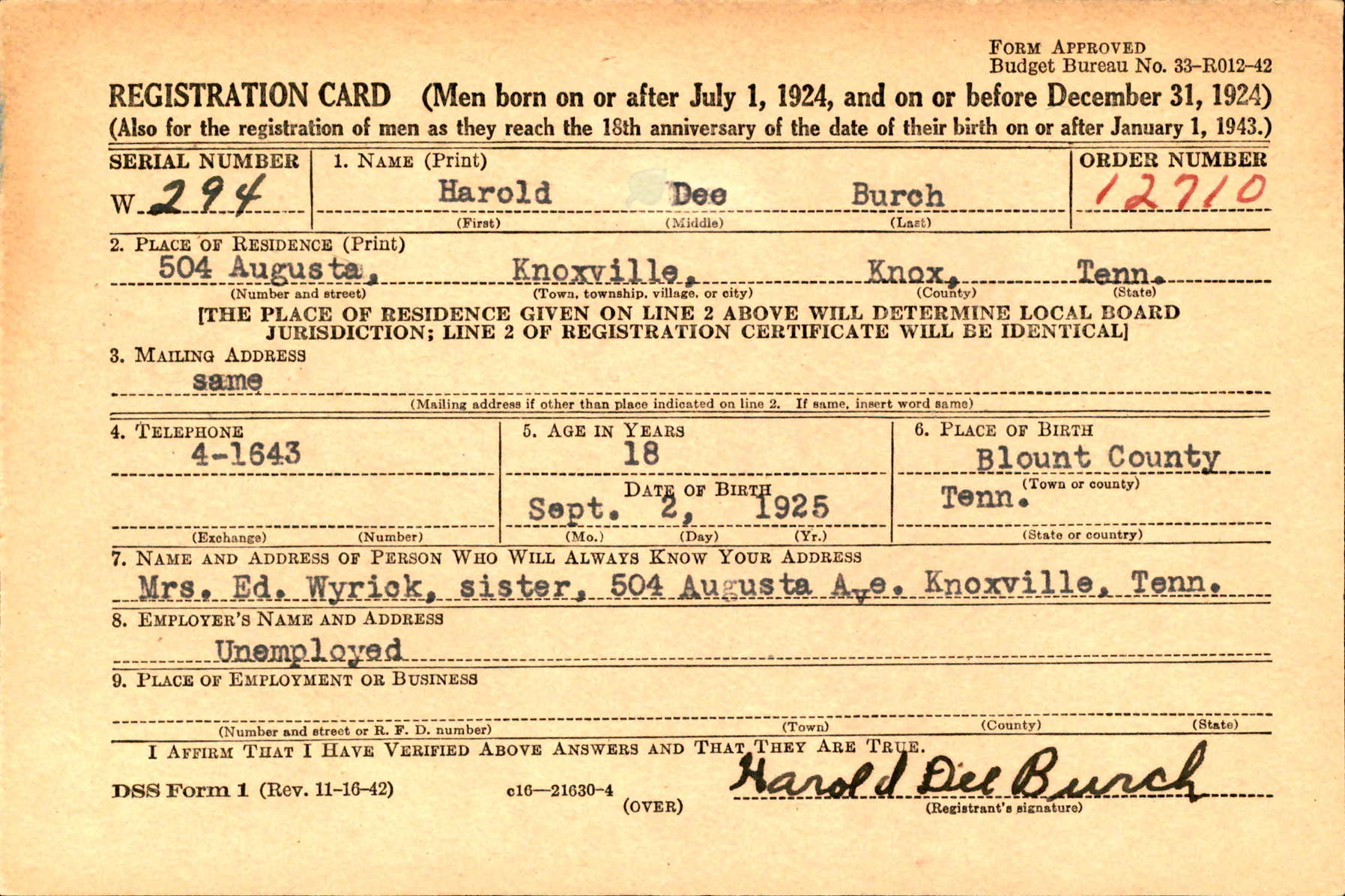 Harold Dee Burch was the son of Andrew Lee Burch and Laura Parks.