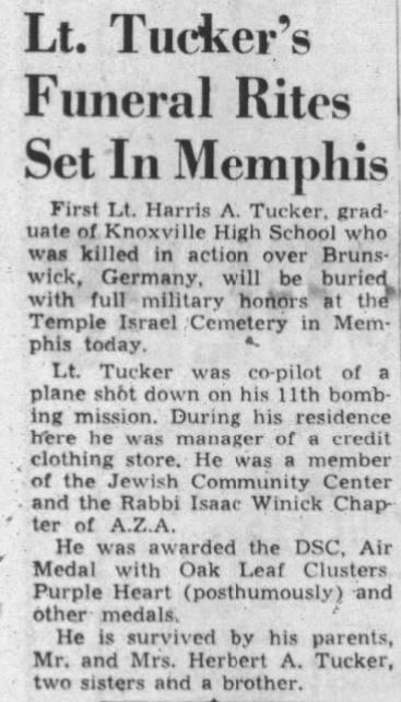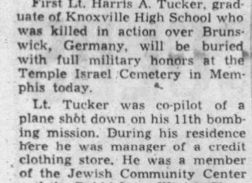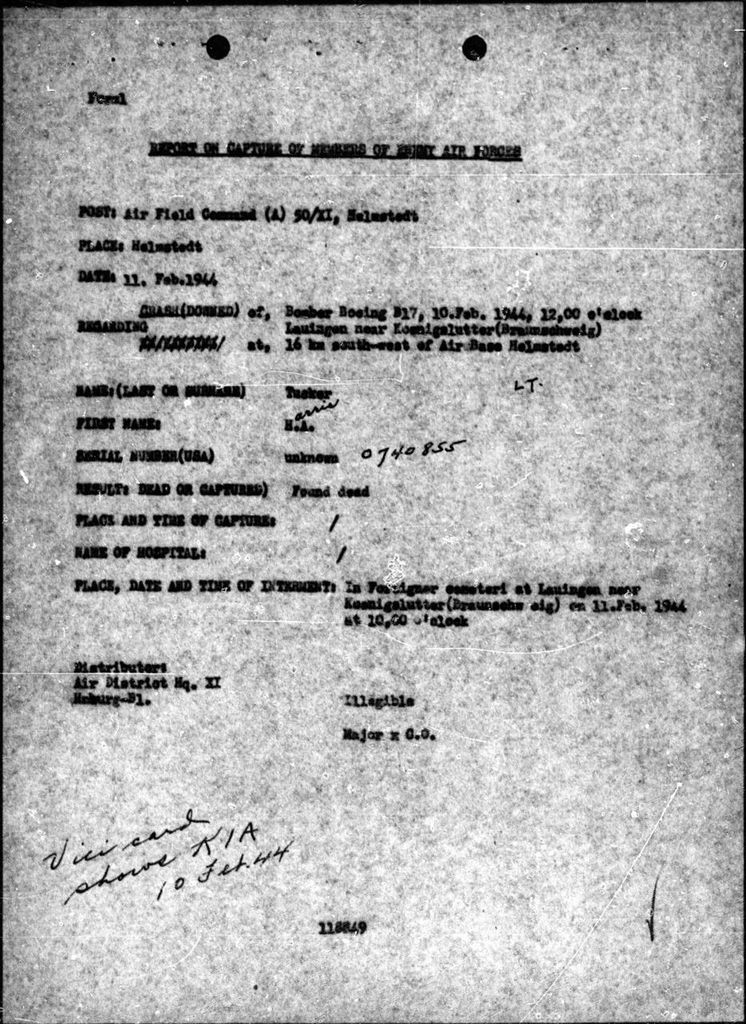 2nd Lt Tucker was initially buried at the cemetery at Lauingen near Kosnigslutter on February 11, 1944.