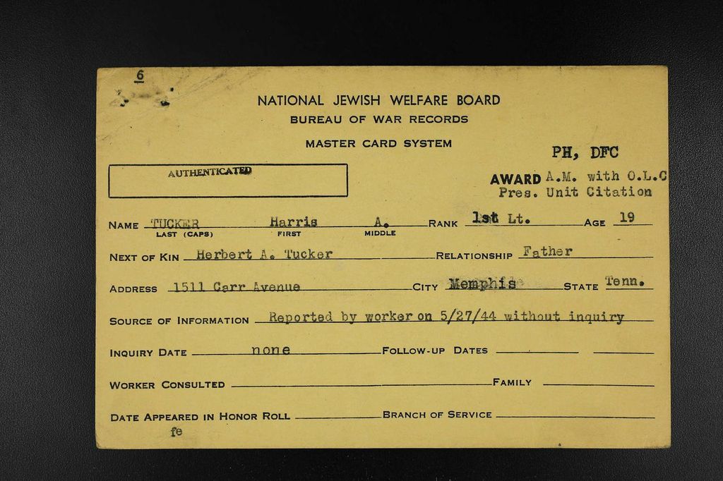 Served in the European Theater in England with the 331st, B Squadron, 94th Group, Crew 83. Shot down over Brunswick, Germany February 10, 1944 and was killed.
