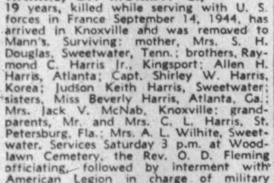 - Burial/Memorial Location: Woodlawn Cemetery, Knoxville, TN