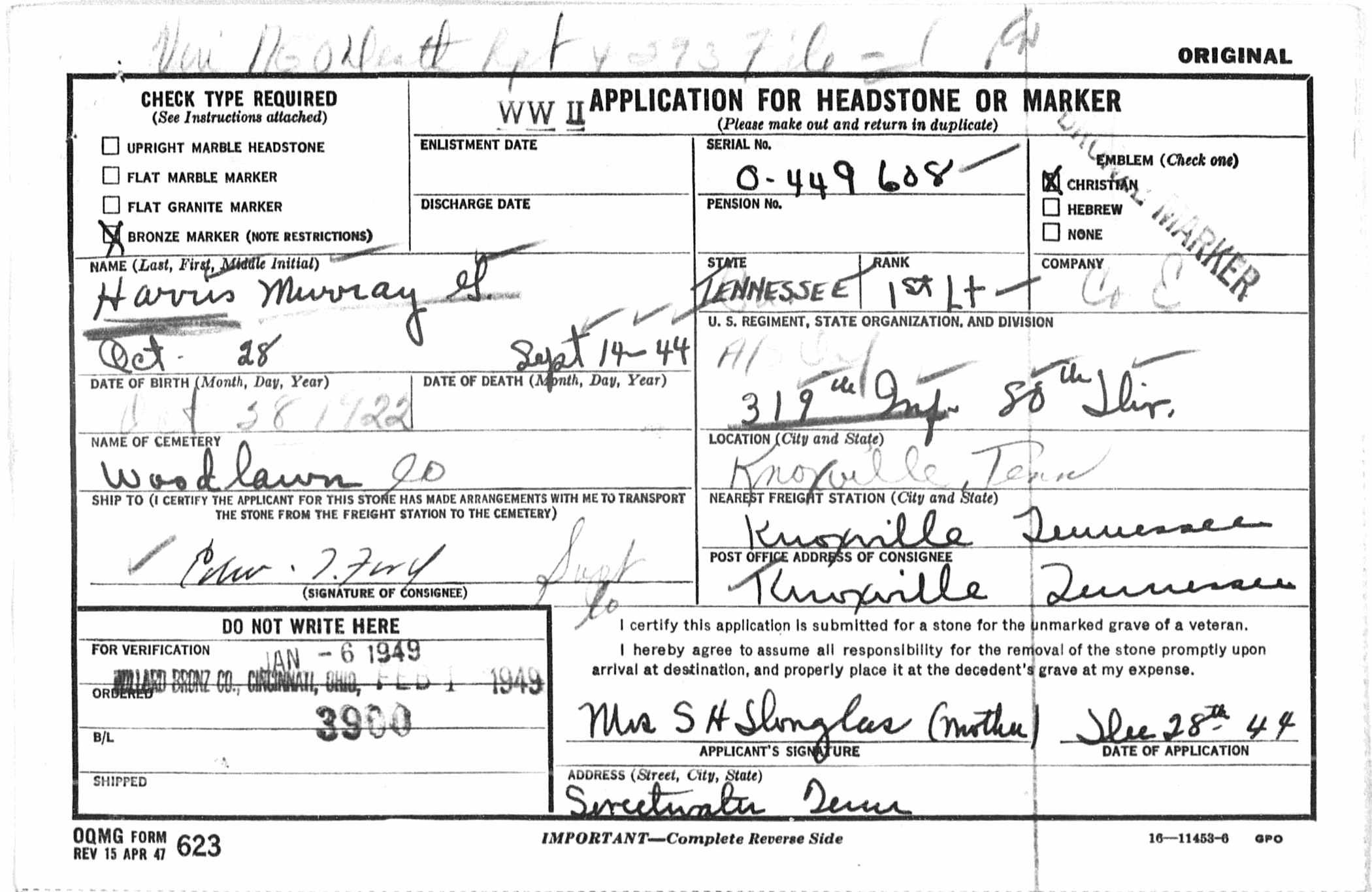 • Burial/Memorial Location: Woodlawn Cemetery, Knoxville, TN