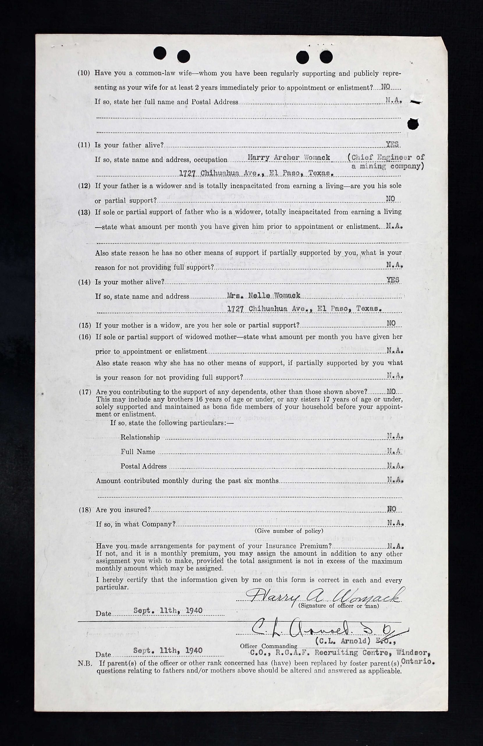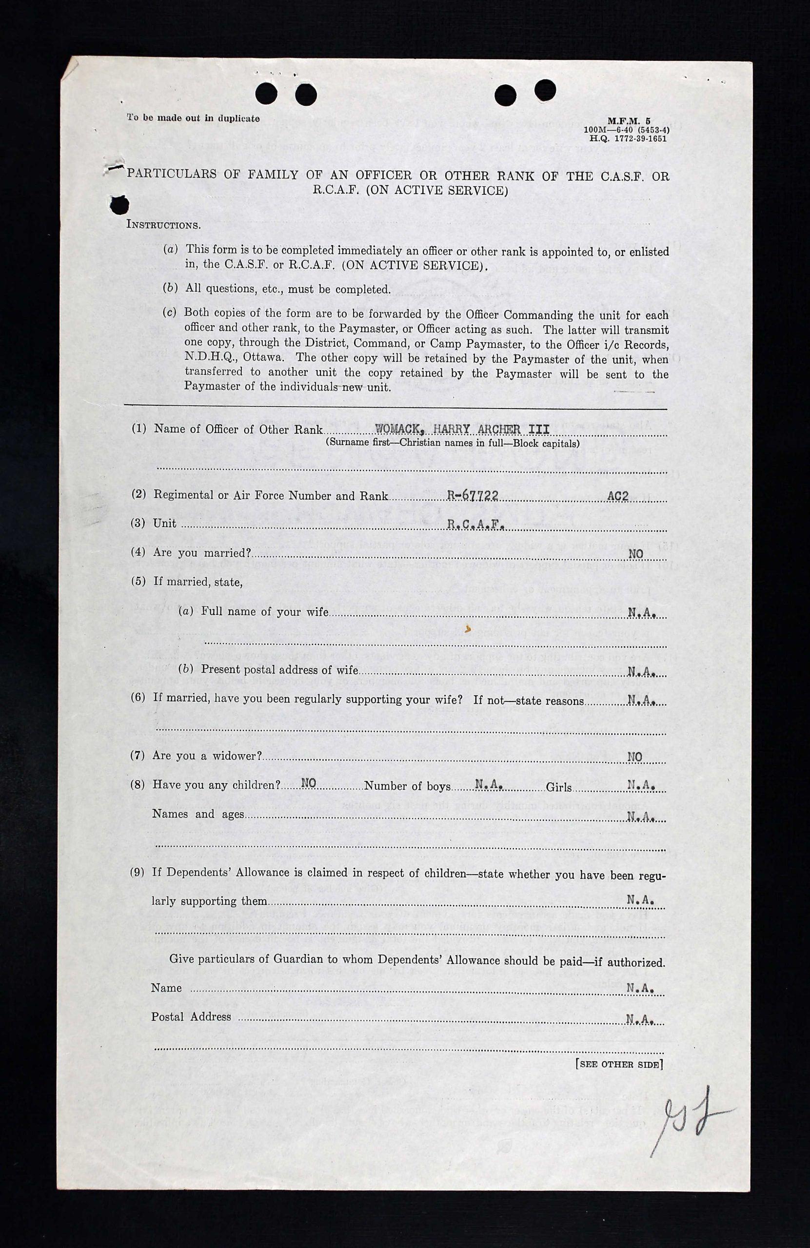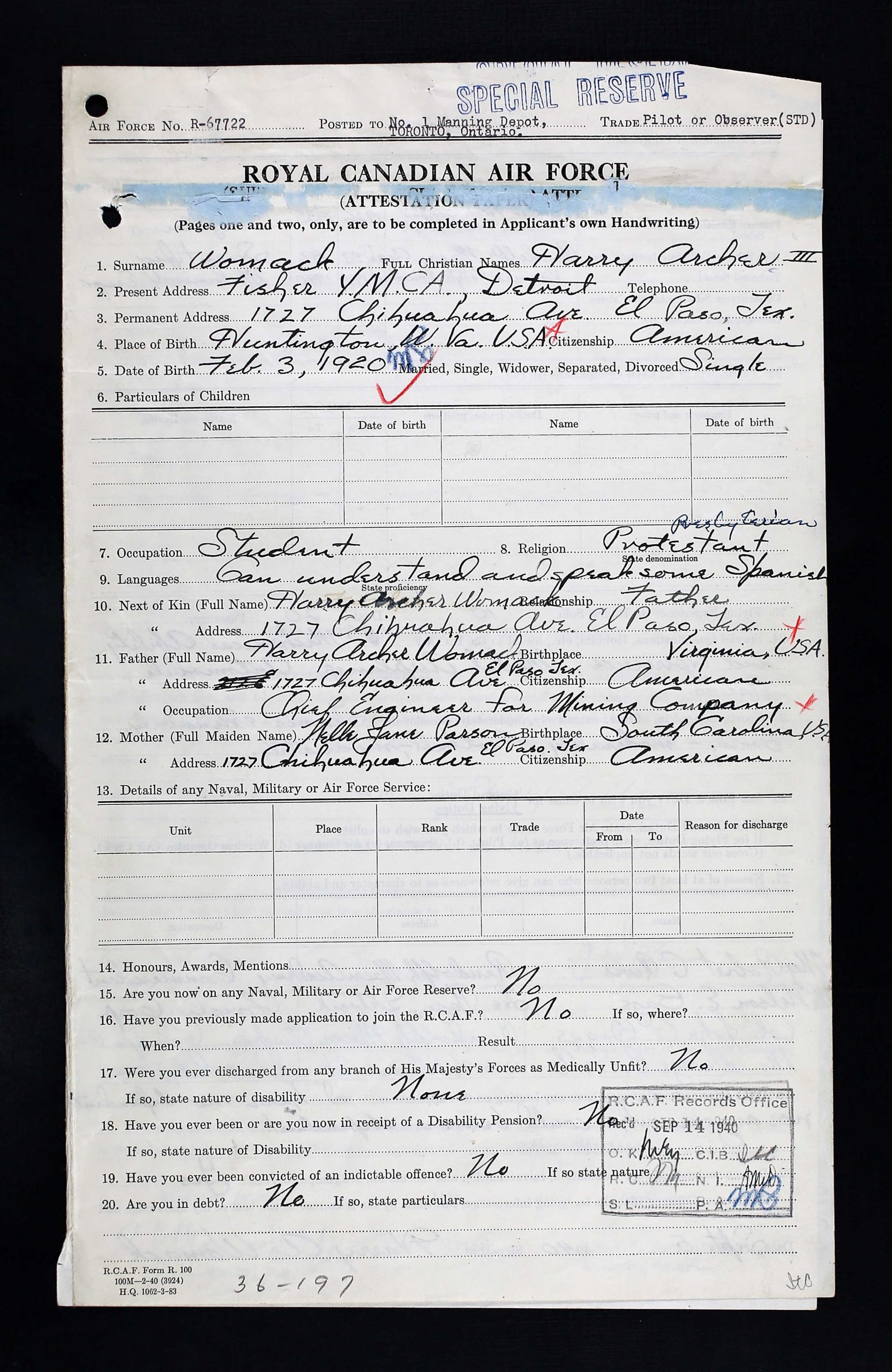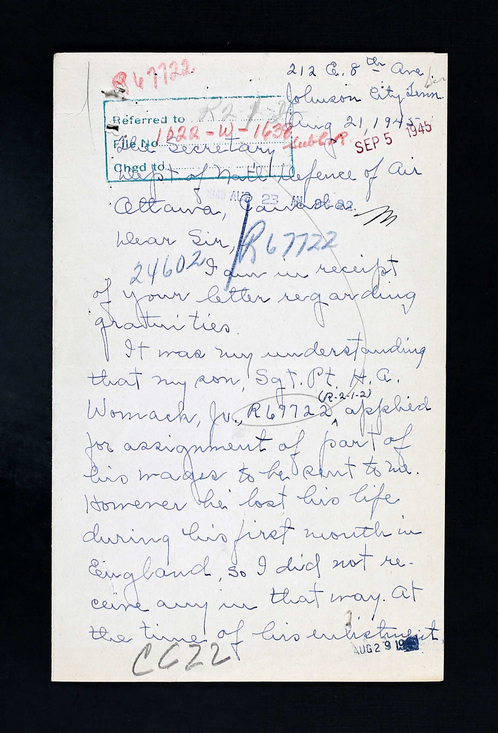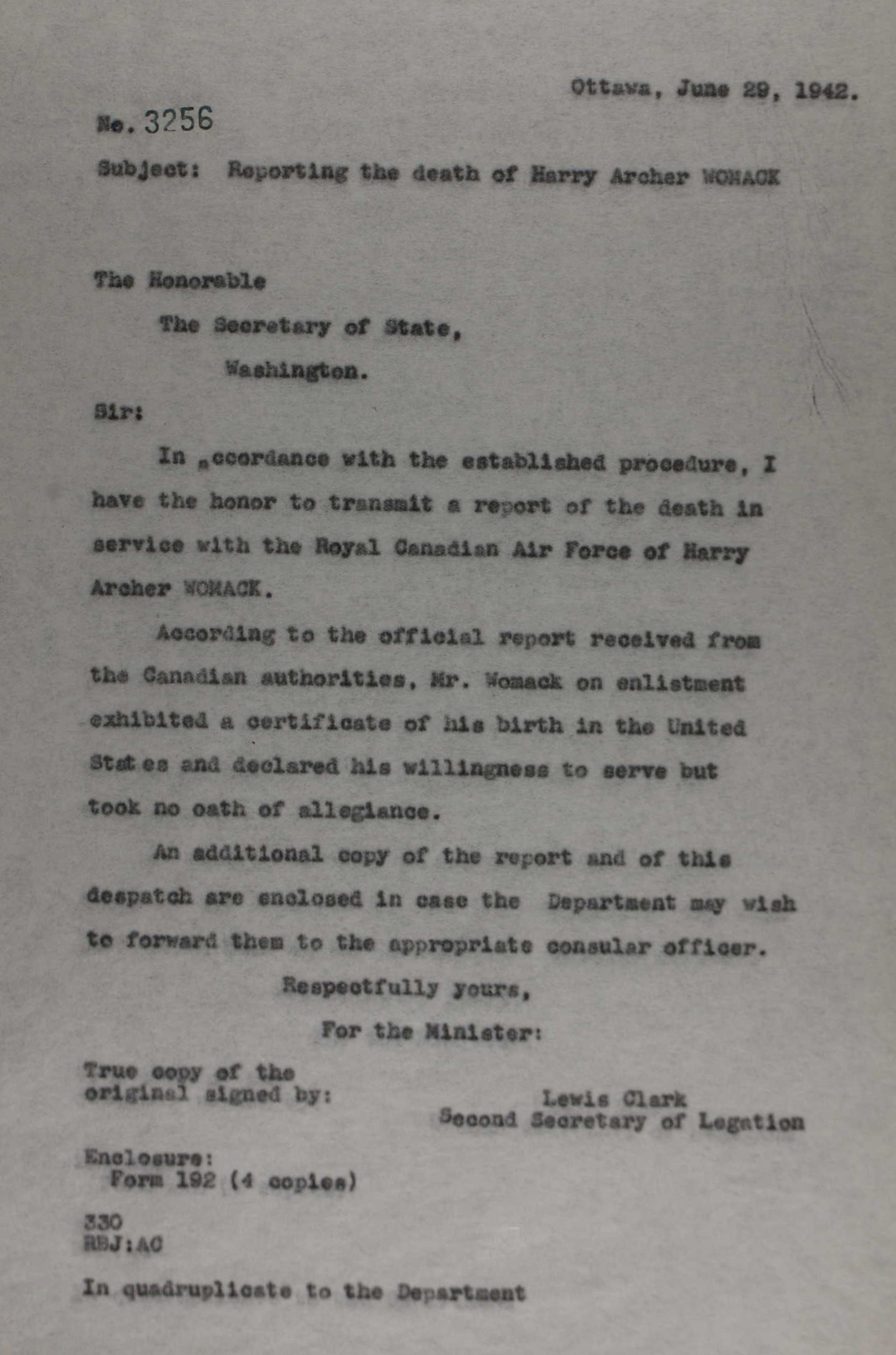 Details in the message were meager, but it was taken that Womack was not killed in action since the crash occured near the RAF station at Hawarden, near Chester….