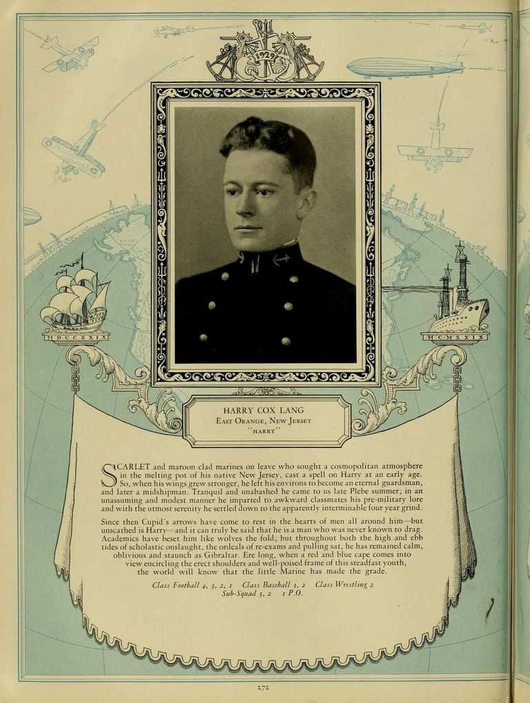 Photo is from the U.S. School Yearbook, United States Naval Academy, Annapolis, Maryland, 1929