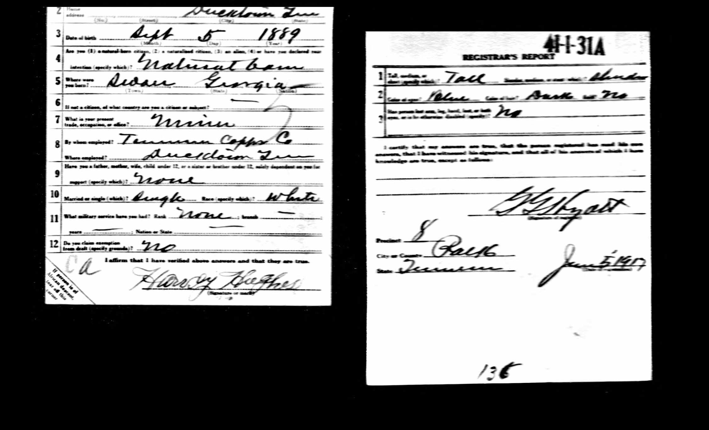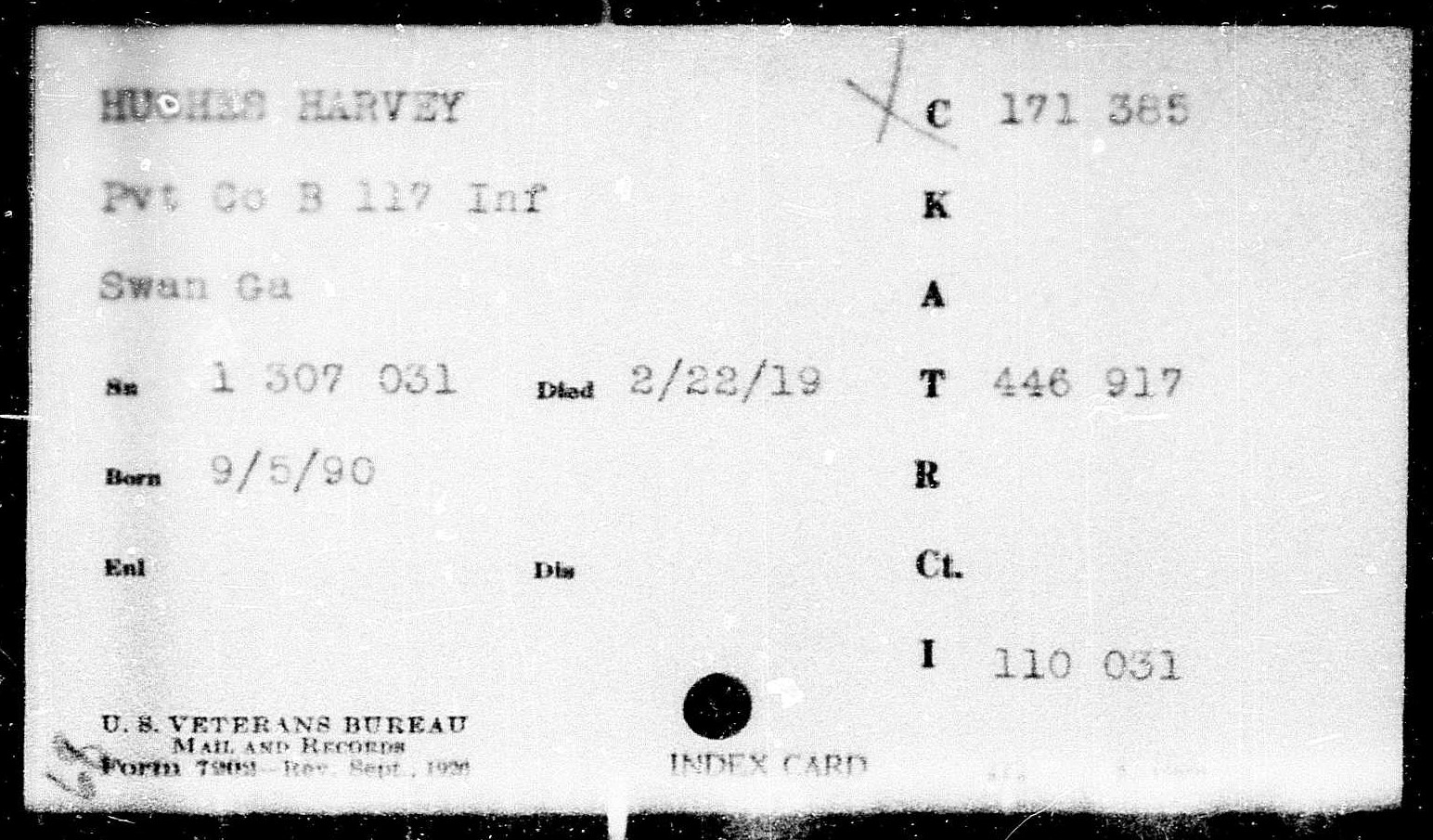 Harvey Hughes was born 5 September 1887, Blue Ridge, Georgia, son of James M. Hughes.