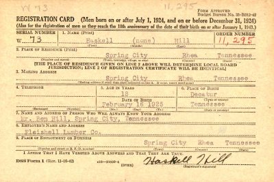 Haskell Hill was born 16 February 1925 to Benjamin Allison Robert (Ben) Hill and Anna (Annie) Underwood. He was married to Yetiva Matherly.