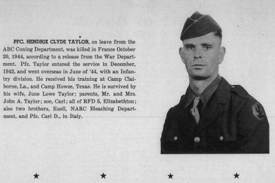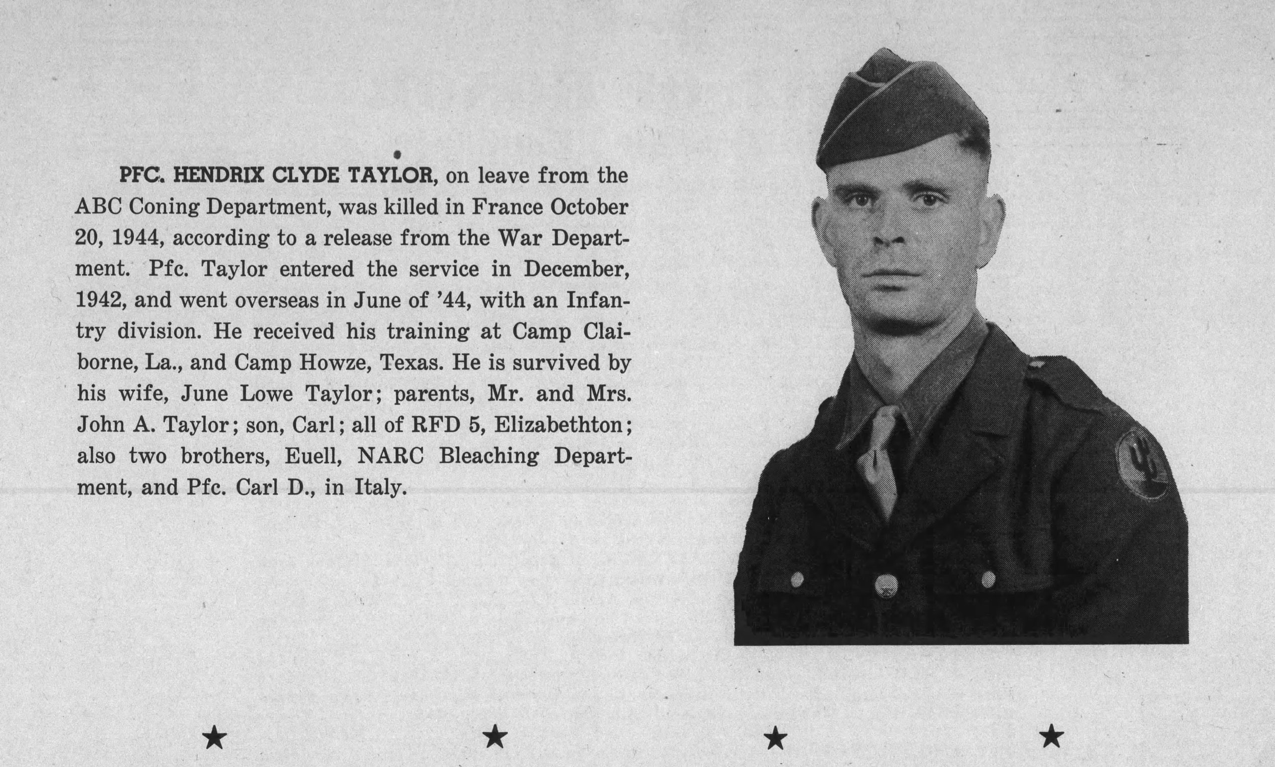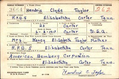 Hendrix Clyde Taylor was the son of John Alexander Taylor and Nancy Elizabeth Grindstaff. He was the husband of June Winnie Lowe.