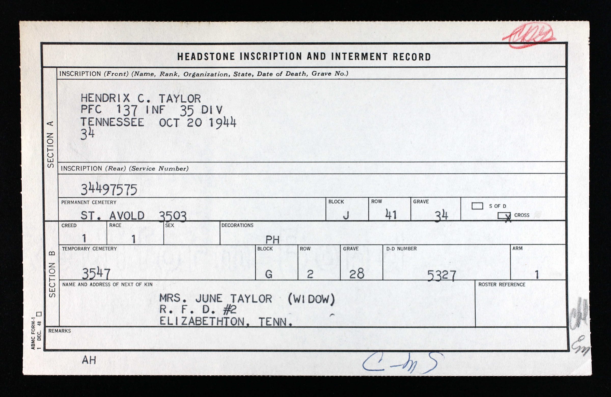 - Burial/Memorial Location: Lorraine American Cemetery, St. Avold (Moselle), France