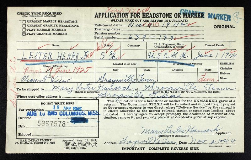 Henry Franklin Lester was born on 18 June 1925, son of Church Calvin Lester and Mary Elizabeth Moore.