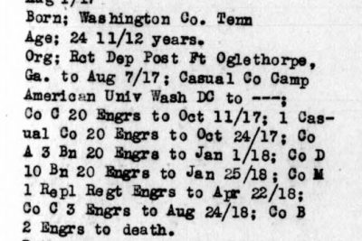 Died 2 October 1918 of broncho pneumonia at Camp A.A. Humphreys, Virginia