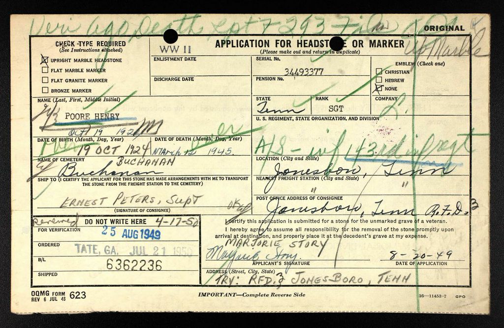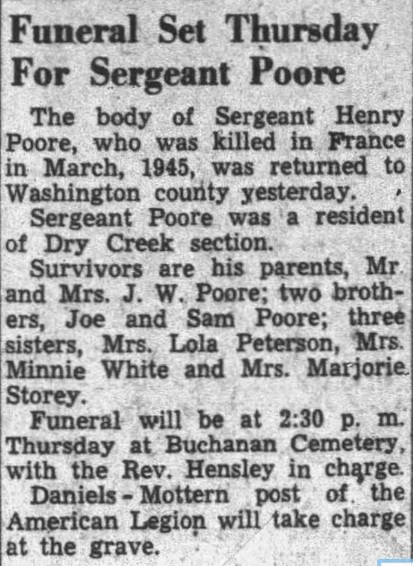 Henry Poore was born on 19 October 1924, the son of James William Poore and Mary M. Gilbert.