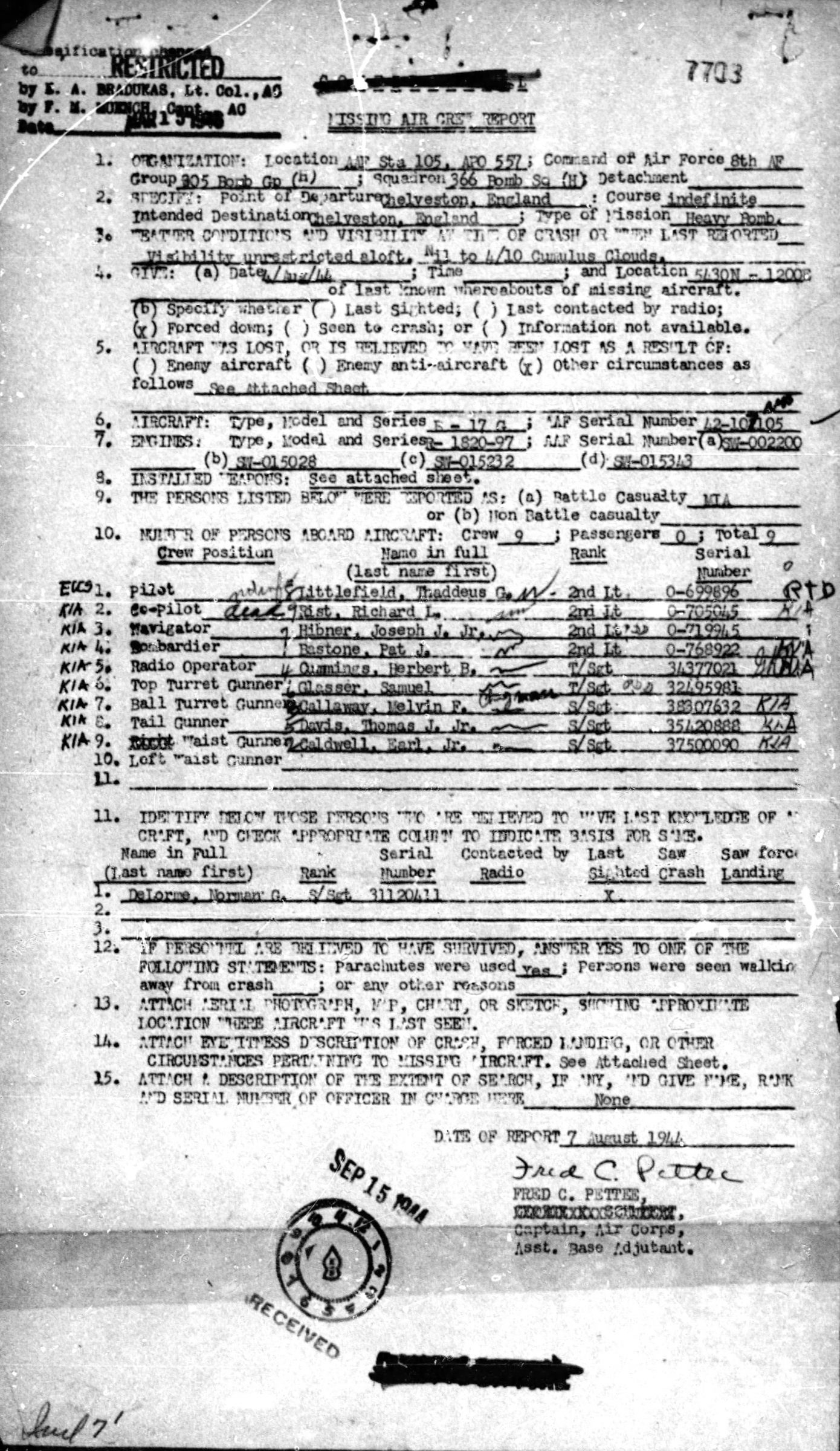- Division/Assignment: 336th Bomber Squadron, 305th Bomber Group, Heavy