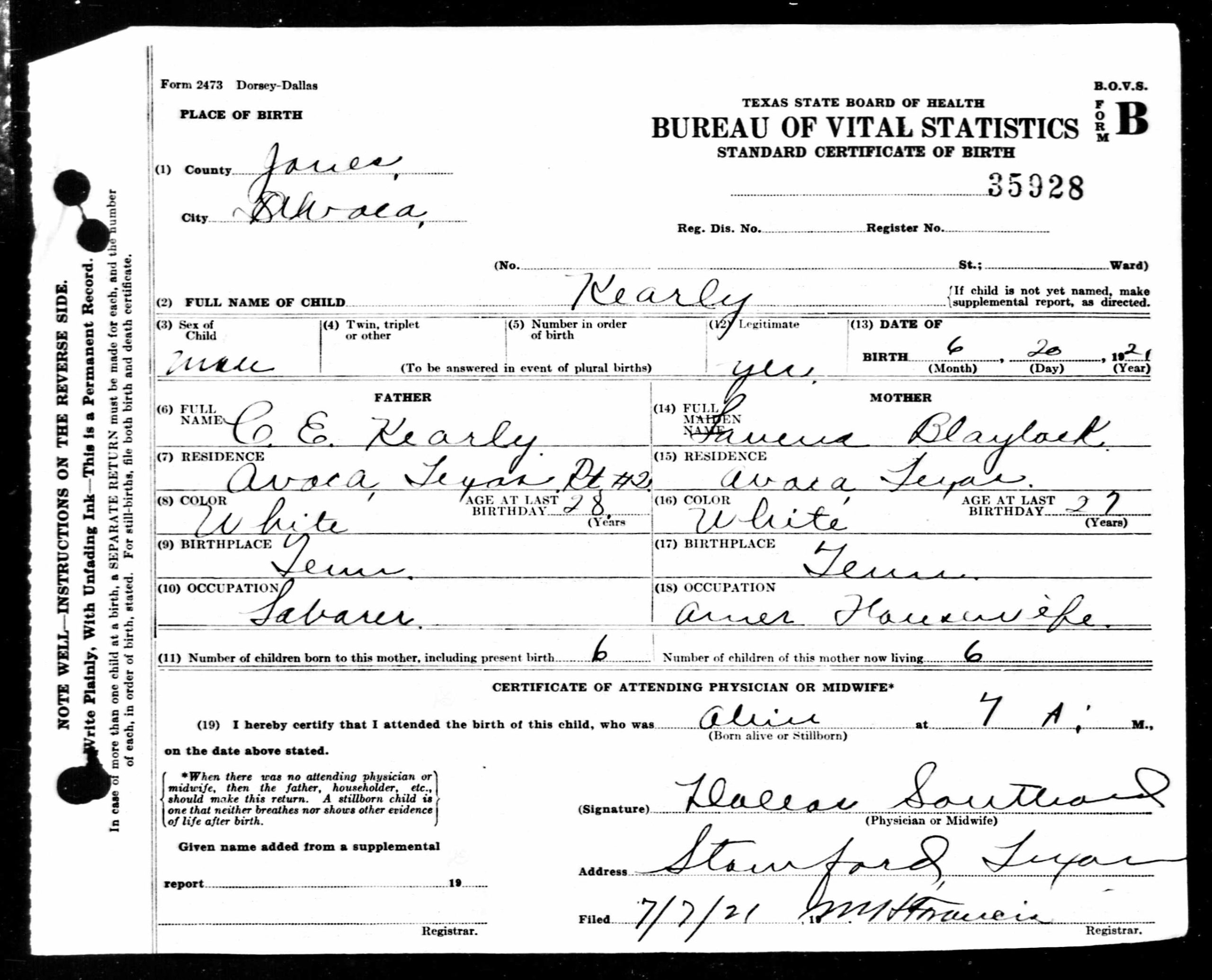 Staff Sergeant Herbert Lee Kerley #6296890 US Army Air Forces was born at Avara, Texas, the son of Clay Evans Kerley and Katherine Lavena Blaylock. Last name was also spelled as Kearley.